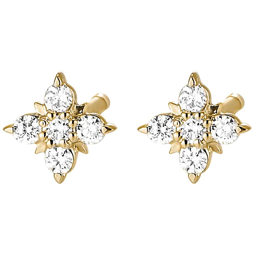Ponadczasowe i stylowe kolczyki w formie kwiatków ze złota i diamentów.
