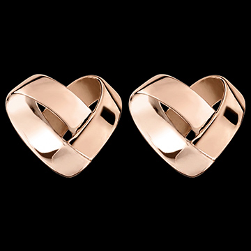 Serce – ponadczasowy symbol jubilerstwa – w interpretacji Edenly jako origami, gdzie wstęgi z różowego złota łączą się z oryginalnością i elegancją. Para subtelnych, wyraźnie kobiecych kolczyków sztyftów.