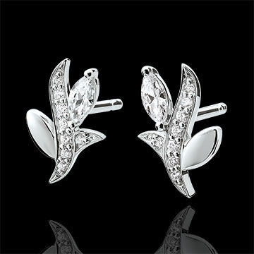 ZACZAROWANY OGRóD NR 8Sztyfty Liście - Białe złoto 375 - Diament ID : 3541