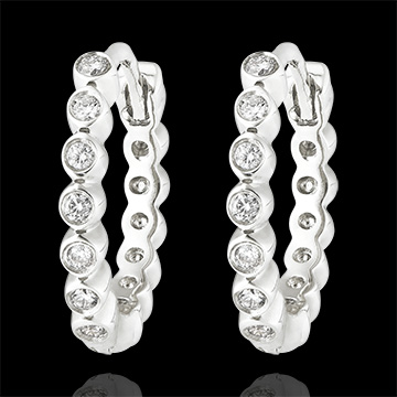 Okręg wykonany z perełek z białego złota, wysadzany diamentami. Kobiece kolczyki w klasycznym i oryginalnym wydaniu.14 diamentów: 0.07 karata.