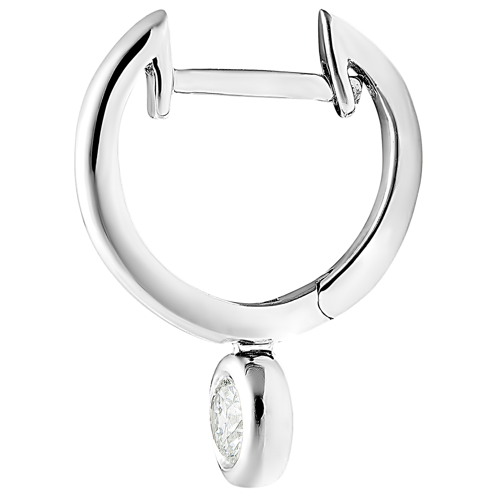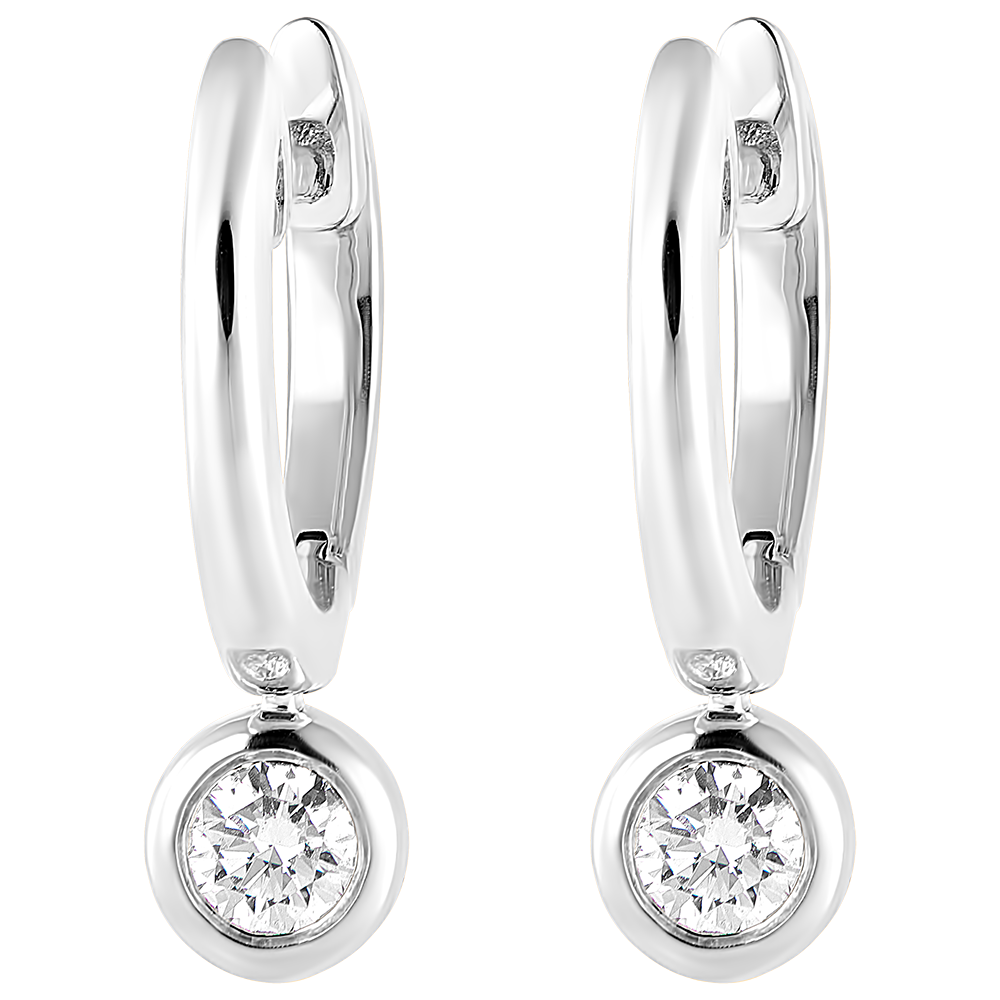 Kolczyki typu kreolki w całości z białego złota z zawieszką wysadzaną diamentami, która delikatnie połyskuje wraz z każdym ruchem.