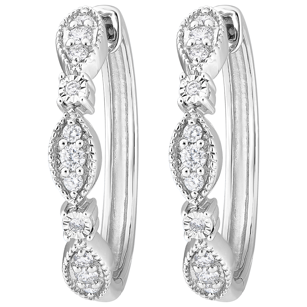 Kolczyki typu kreolki Świeżość - Małe wisiorki - 9 karatowe białe złoto i diamenty