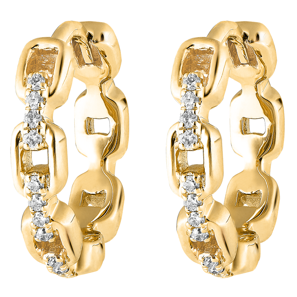 Kolczyki typu kreolki Wschodnie spojrzenie - Kubańskie ogniwo - 9 karatowe żółte złoto i diamenty