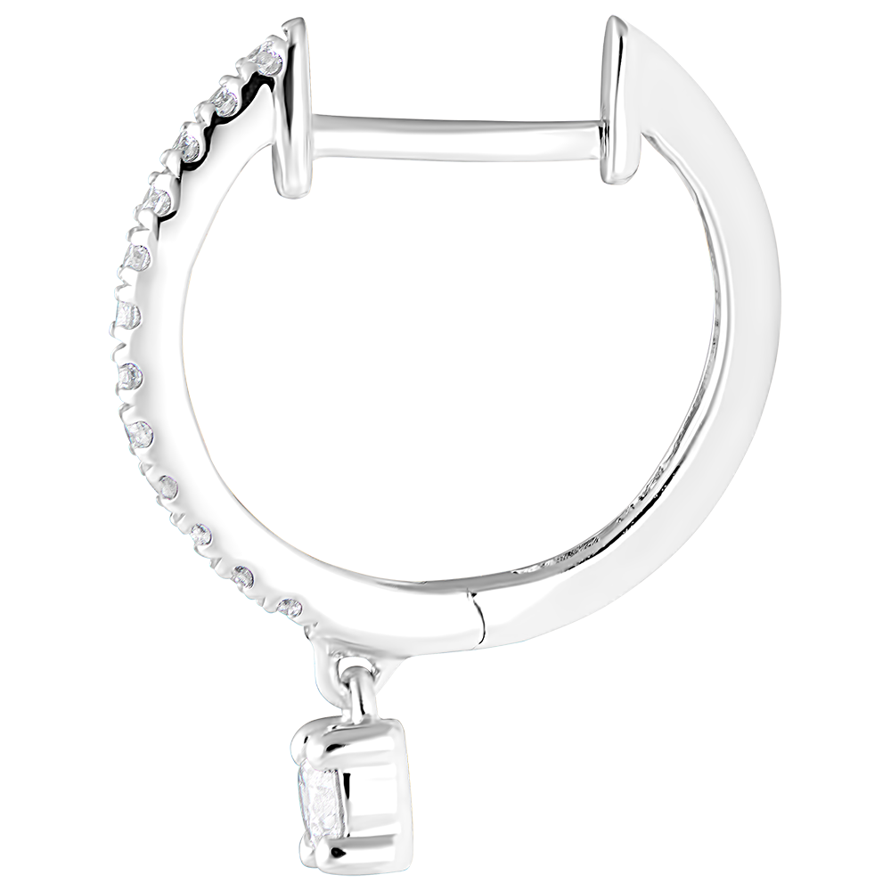 Kolczyki typu kreolki z białego złota częściowo wysadzane diamentami z zawieszką inkrustowaną diamentami, która nadaje szlachetny i efektowny akcent.