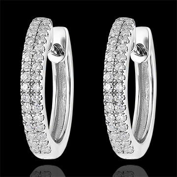 Kolczyki typu kreolki z białego złota z podwójnym rzędem diamentów, który subtelnie dodaje blasku i elegancji