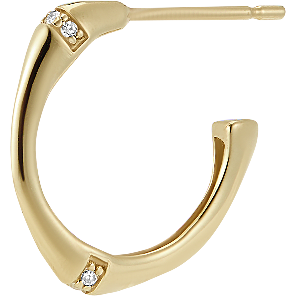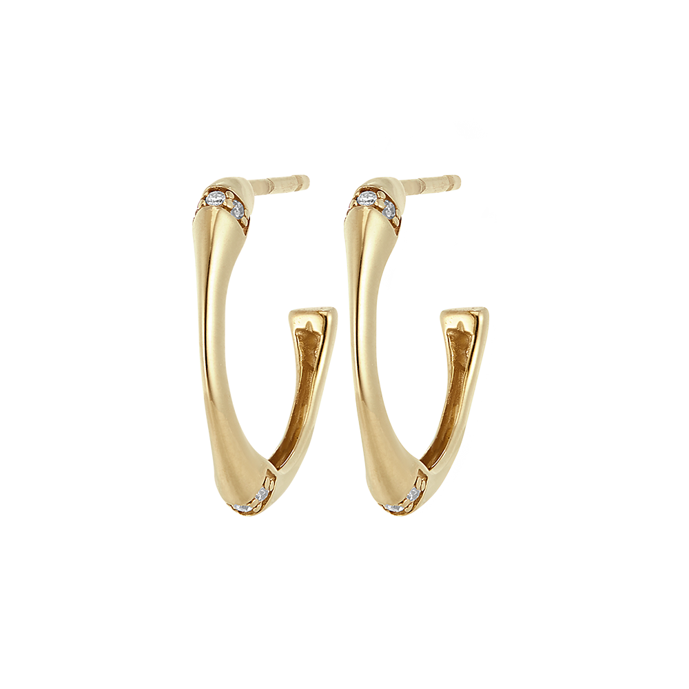 Giętka łodyżka bambusa ze złota zamieniła się w parę ponadczasowych kolczyków o średnicy 14mm. „Bambusowe” węzły zostały wysadzone diamentami