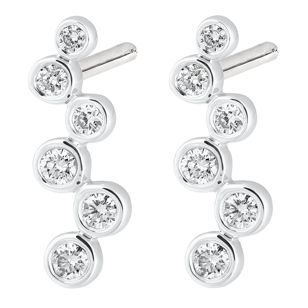 6 brylantów w pełnej oprawie niczym krople porannej rosy tworzą parę delikatnych i wyrafinowanych kolczyków.