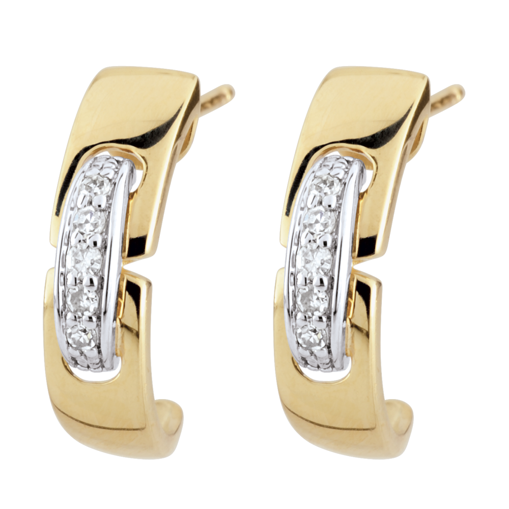 Dwa segmenty z żółtego złota połączone na wieki łącznikiem z białego złota i diamentów.