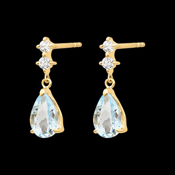 RAJSKI PTAK NR 50Kolczyki - Żółte złoto 375 - Diament laboratoryjny, Akwamaryn ID : 3971