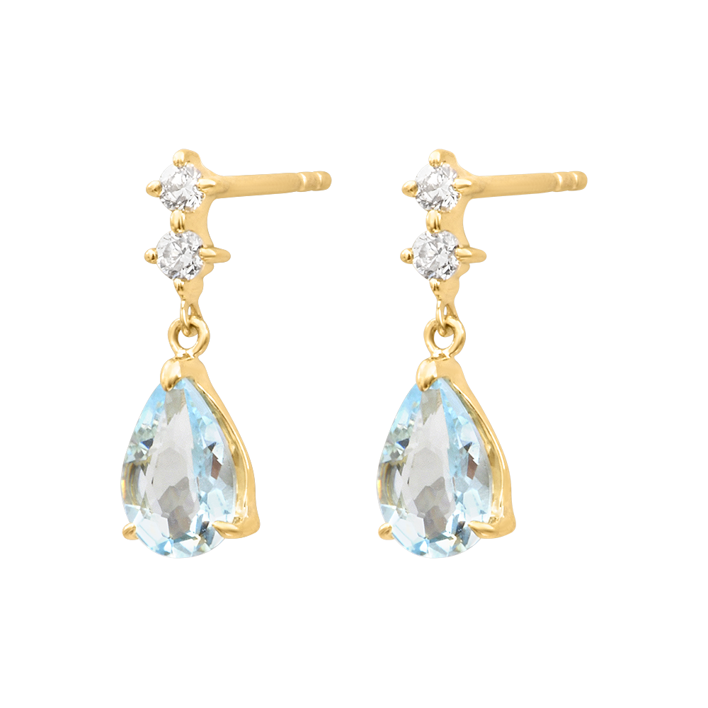 Kolczyki wiszące Elvara – Żółte złoto 9-karatowe, akwamaryny i diamenty syntetyczne