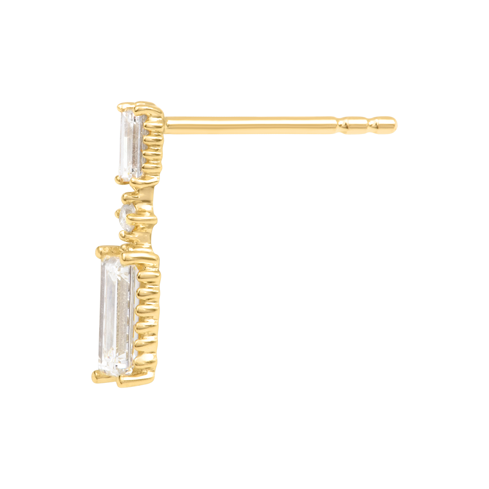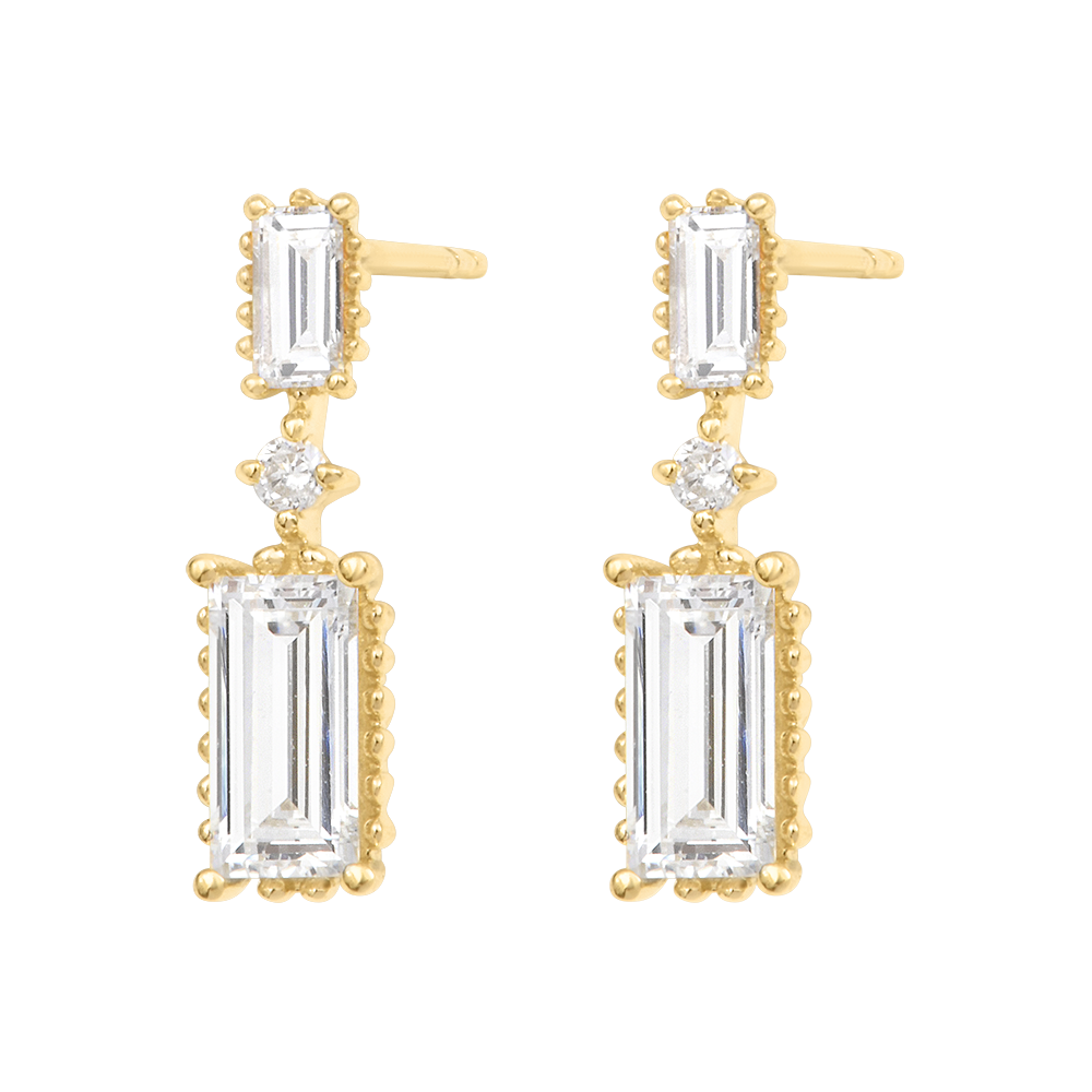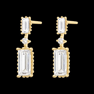 Wykonane z żółtego złota 9 karat, kolczyki łączą ciepło metalu szlachetnego z czystością i blaskiem kamieni.