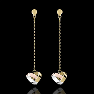 Serce, ikona biżuterii, ponownie zaprezentowana przez Edenly w wersji origami, w której 3 złote elementy przeplatają się z oryginalnością i elegancją. Model kolczyków z łańcuchem, miękkich i zmysłowych, które towarzyszą lekkim ruchom twarzy