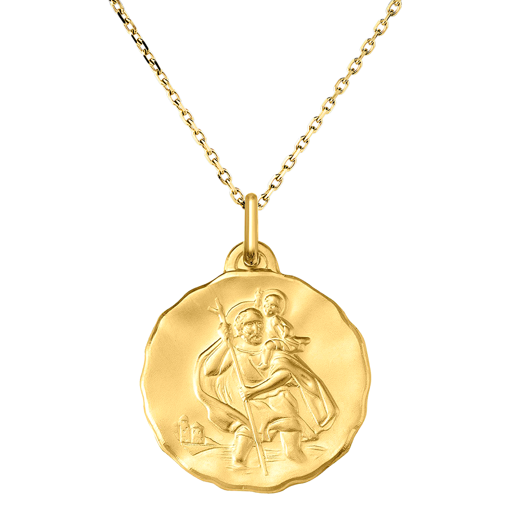 Medalik o średnicy 18 mm można spersonalizować grawerem na odwrocie. Dostarczany jest w eleganckim etui, będącym silnym symbolem wiary i ochrony.