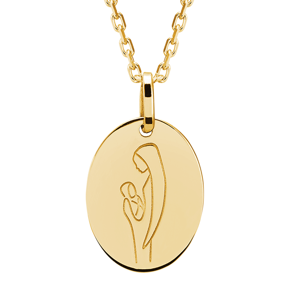 Medalik Matka Boska z Dzieciątkiem - żółte złoto 18 karatów