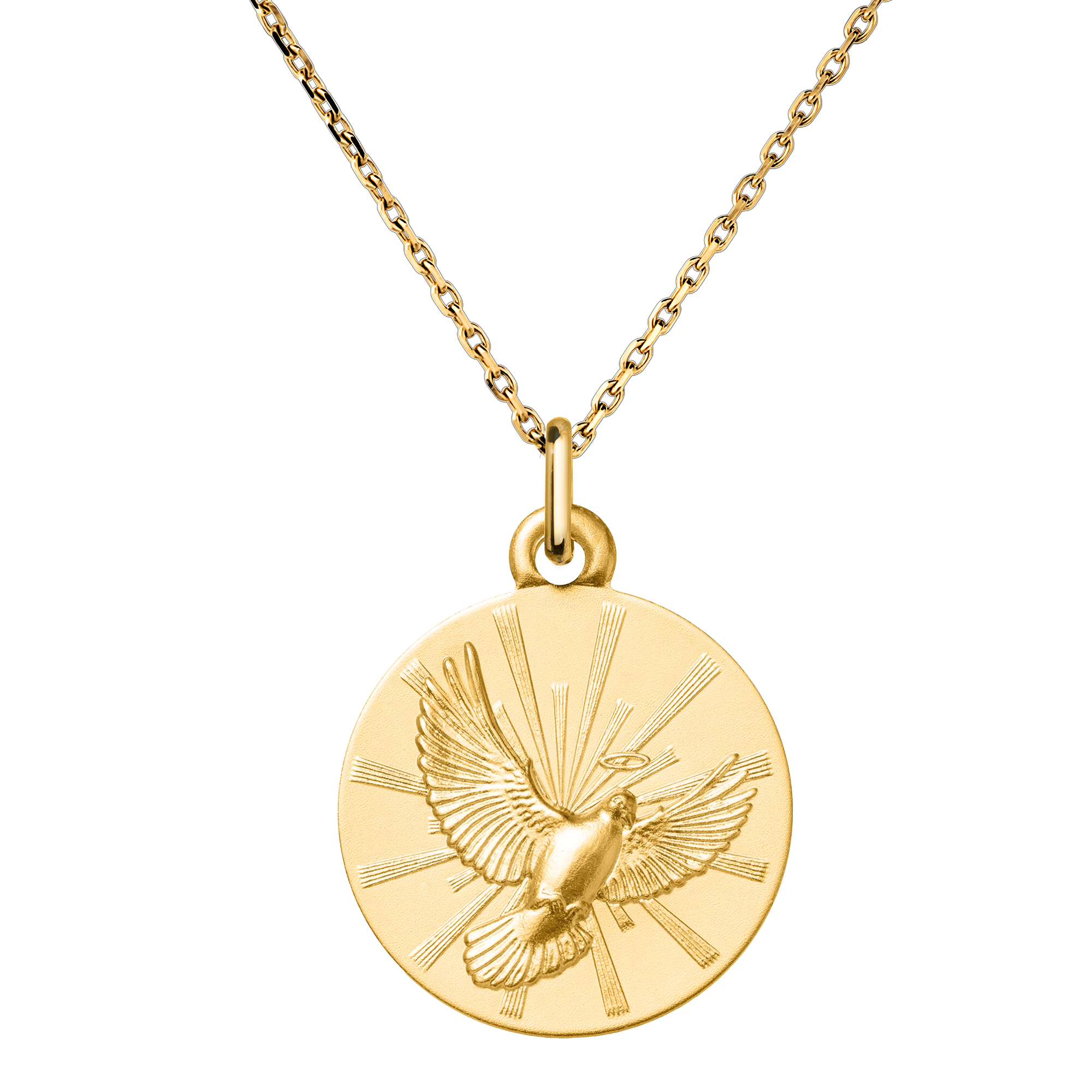Ten elegancko zaprojektowany klejnot ucieleśnia czystość i boską obecność, niosąc przesłanie spokoju i ochrony. Idealny na chrzest, komunię lub inne duchowe okazje, do noszenia lub ofiarowania z oddaniem.