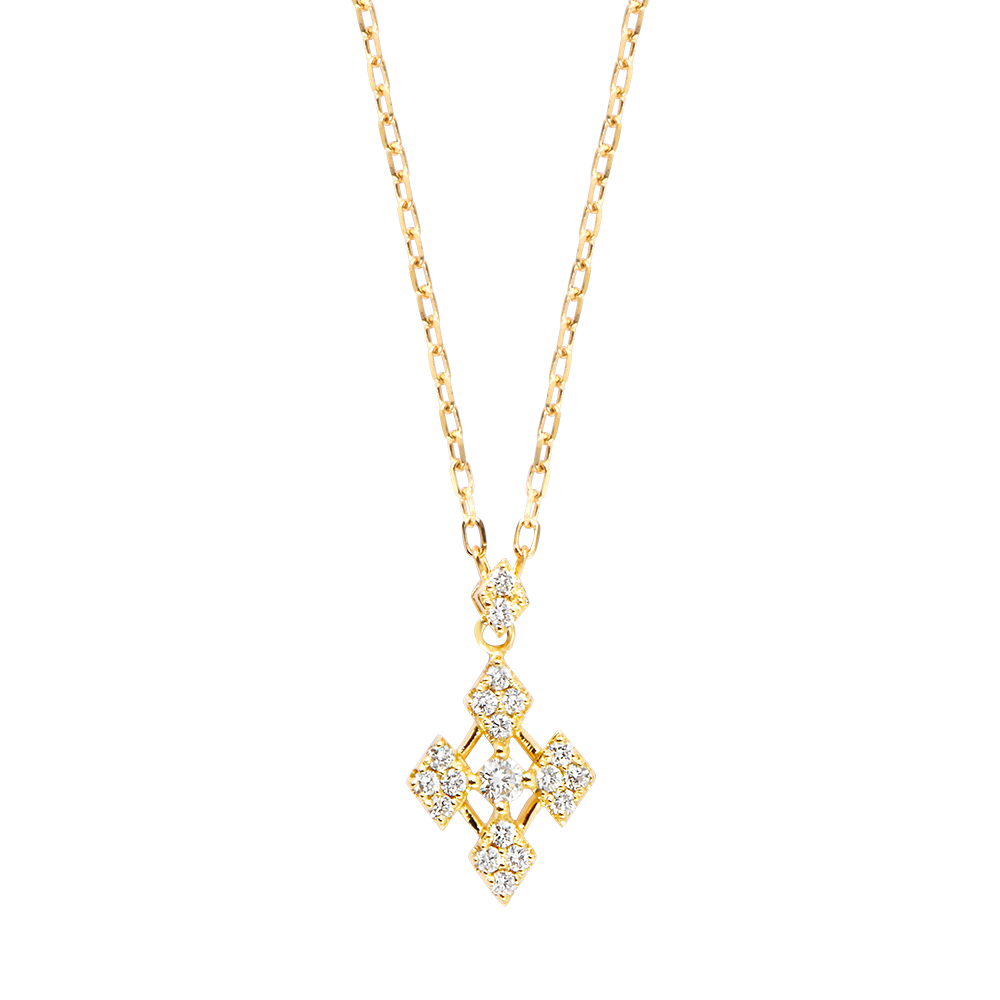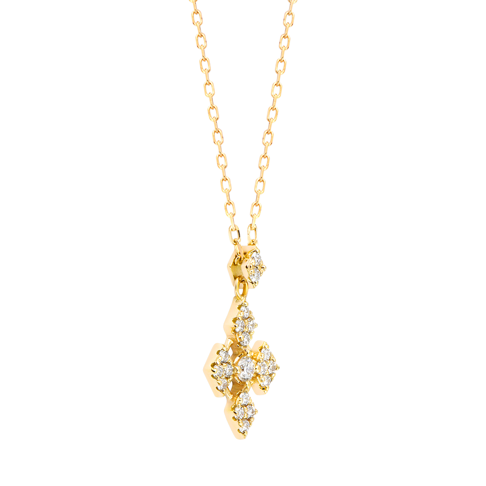 Lśniący geometryczny wzór, wysadzany 19 migoczącymi diamentami syntetycznymi.Wyrazista i szlachetna biżuteria, która podkreśli zarówno wyjątkowe chwile, jak i codzienność.