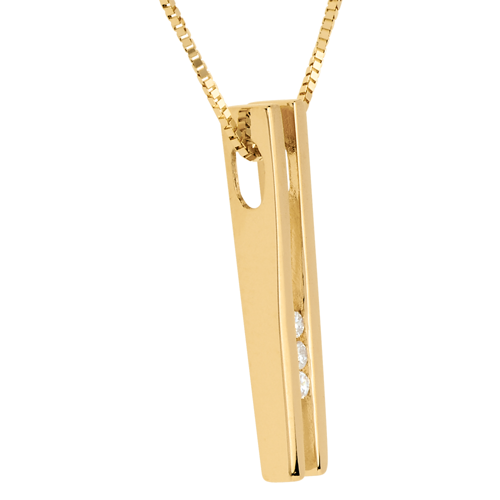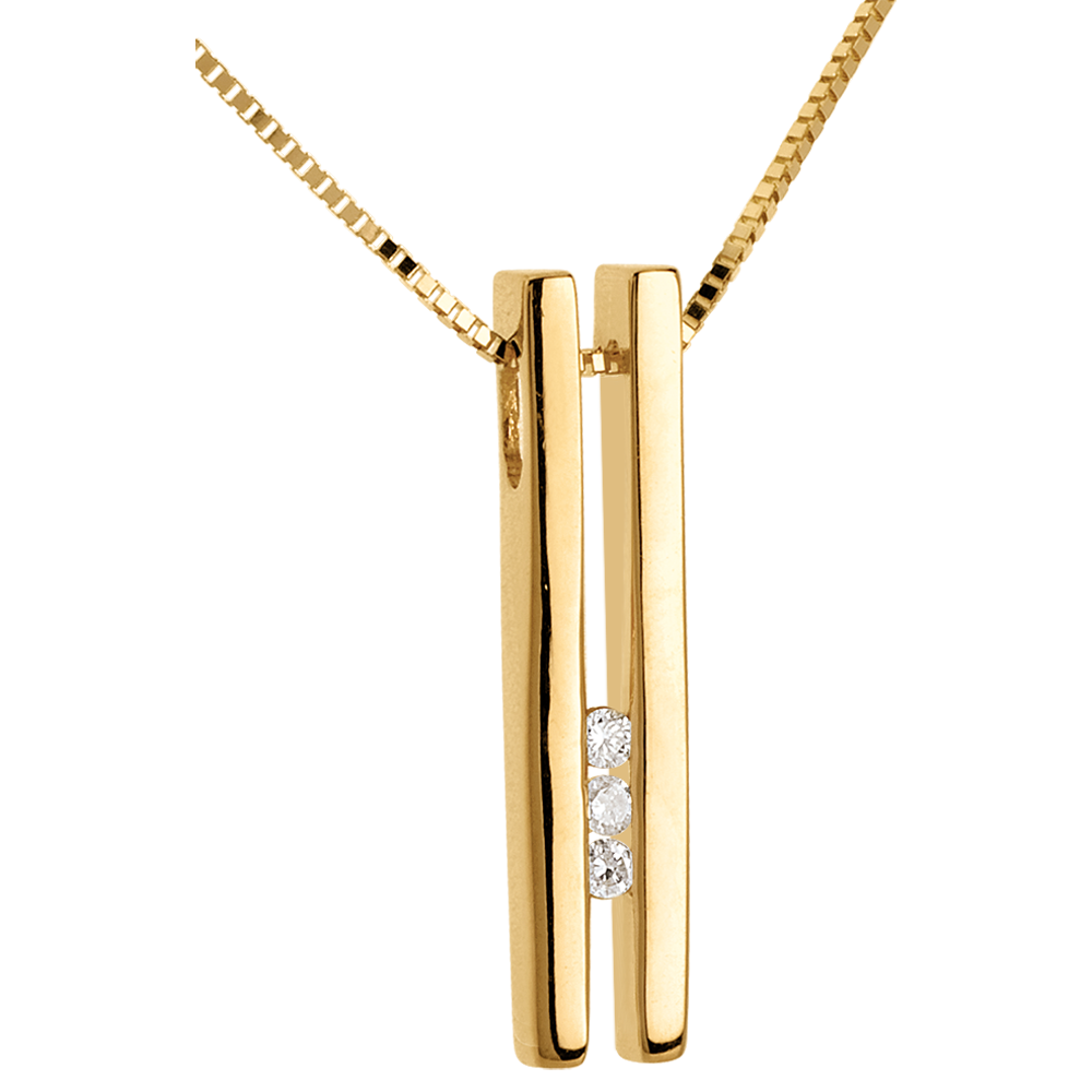 Cała miara diapazonu z żółtego złota z 3 diamentami na łańcuszku z żółtego złota jako wyraz równowagi i doskonałej harmonii.