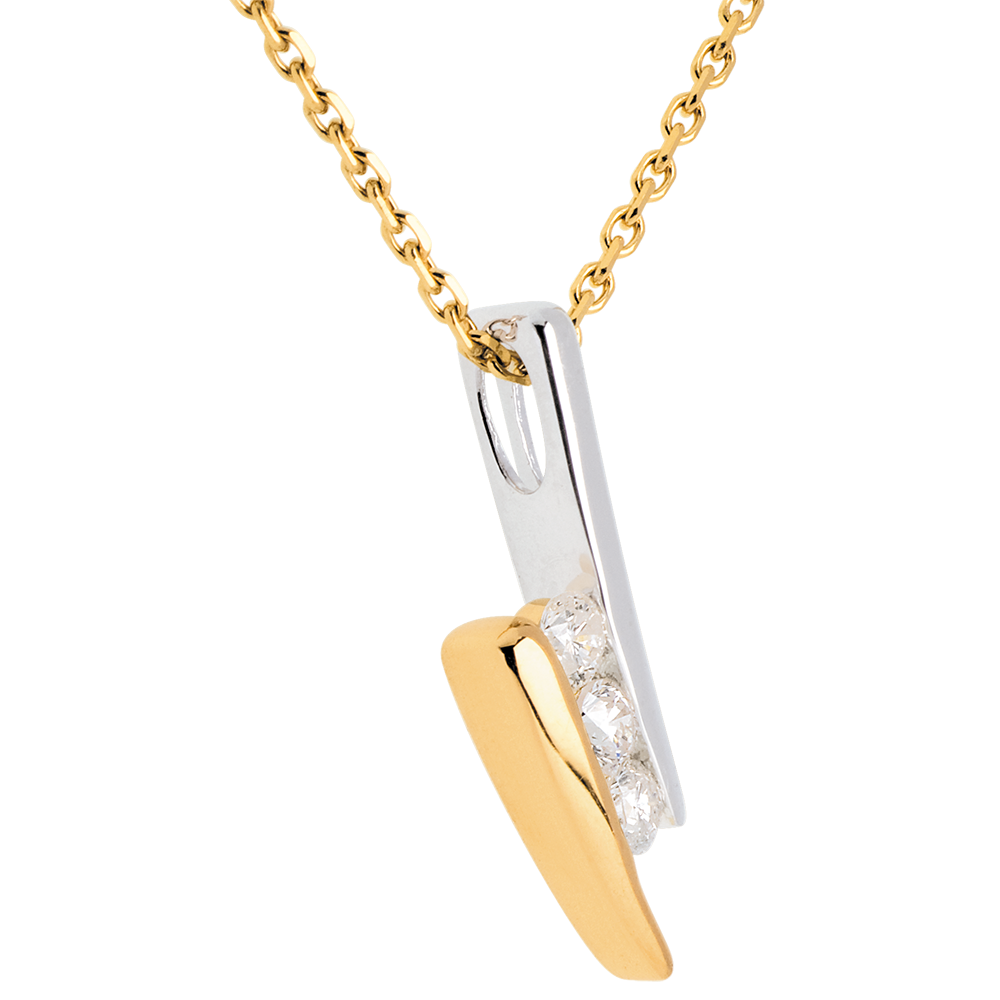 Naszyjnik Drogocenne Gniazdo z potrójnym diamentem - Cytat - 3 diamenty - złoto białe i złoto żółte 18-karatowe