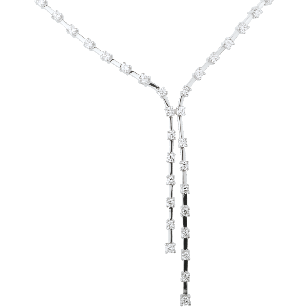 Deszcz diamentów na szyi w oprawie z białego złota w postaci drogocennych kropli.