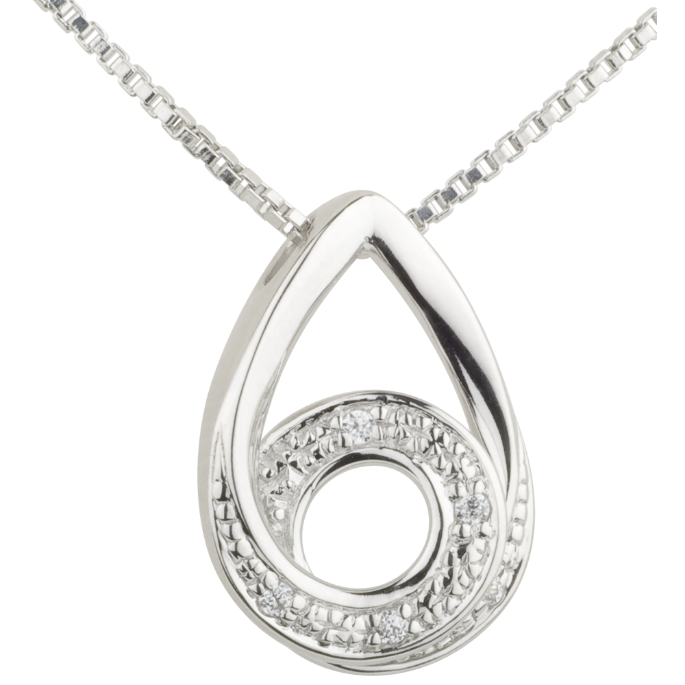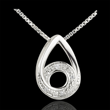 Kropla w formie spirali diamentów na białym złocie, zawieszona na łańcuszku wenecjana.