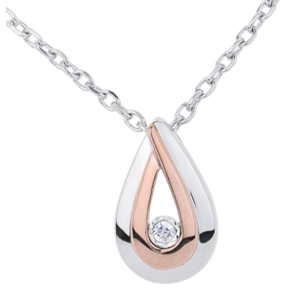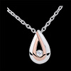 Dwukolorowa kropla ze złota białego i różowego z diamentem na środku, zawieszona na łańcuszku z białego złota.