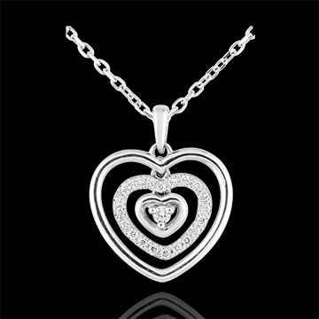 Trzy zwiewne, ruchome serca – dwa serca ze złota i jedno serce wysadzane diamentami z diamentem środkowym oprawionym w trzy krapy.