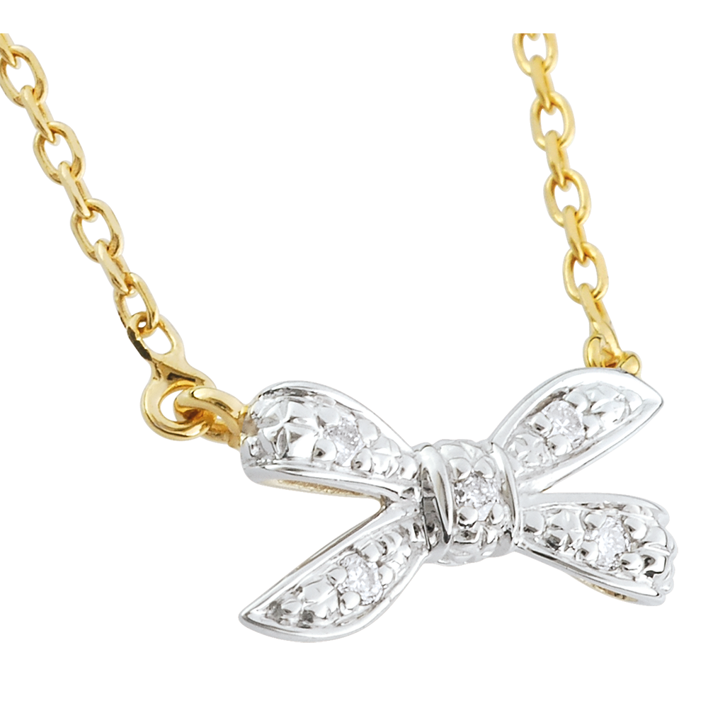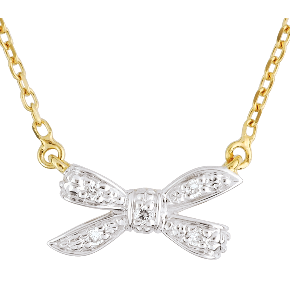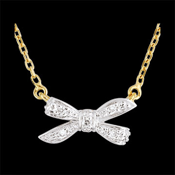 Węzeł ze złota i diamentu zawieszony z jednej i z drugiej strony na łańcuszku z żółtego złota.