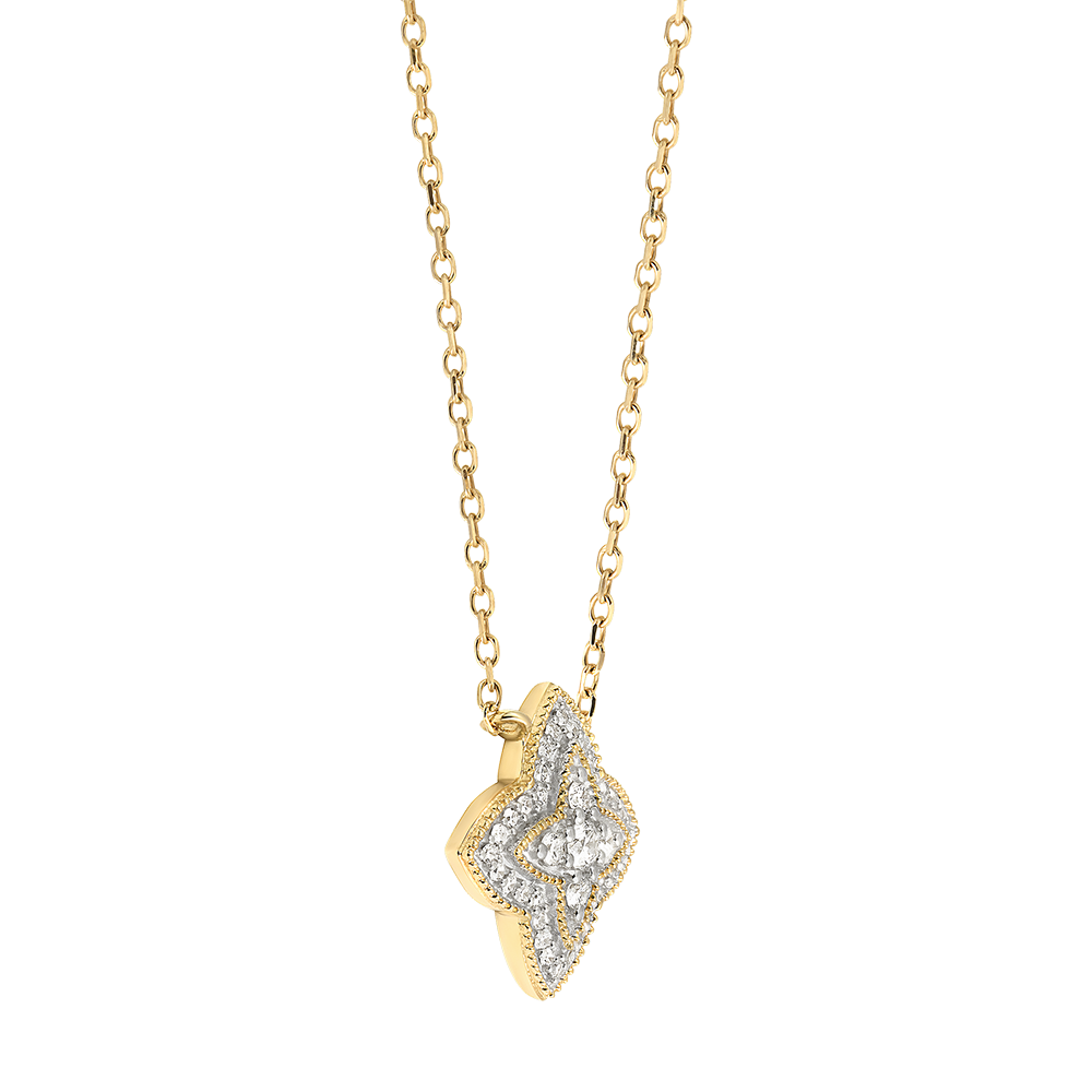 Ten naszyjnik łączy w sobie blask diamentów z designem inspirowanym kwiatami.
