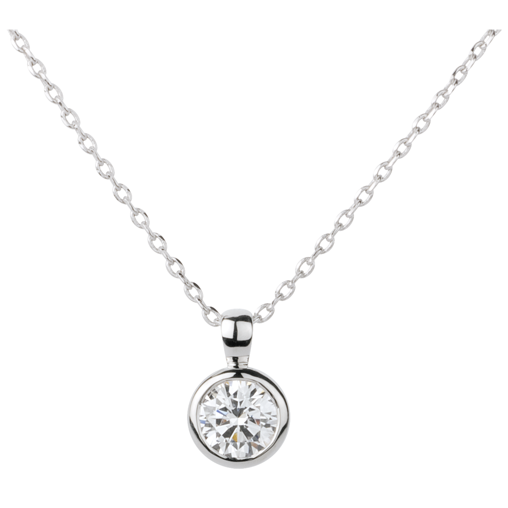 Pojedynczy okrągły diament schowany w gnieździe z białego złota.