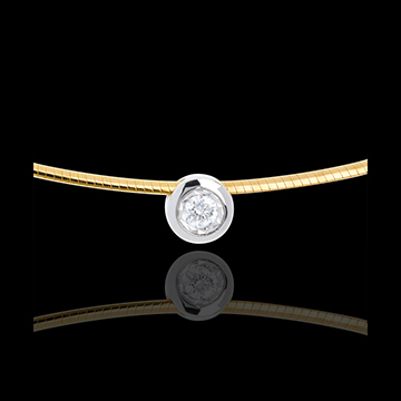 Sztywny naszyjnik zwieńczony diamentem w delikatnym i współczesnym wydaniu.