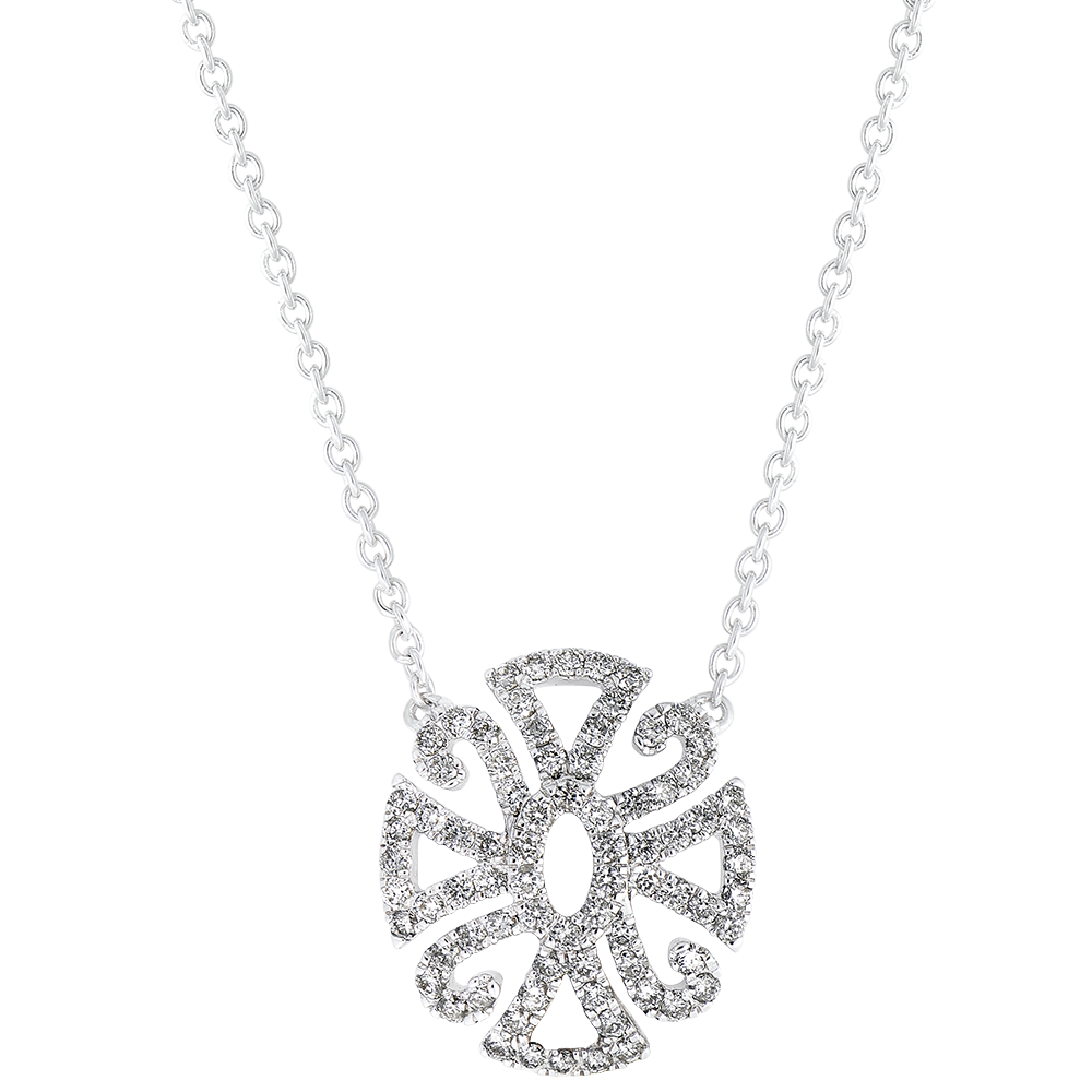 Romantyczny krzyżyk o konturach wysadzanych diamentami nadaje naszyjnikowi elegancki, wyrafinowany i niezwykle okazały wygląd. Łańcuszek dwupozycyjny 42cm i 45cm.