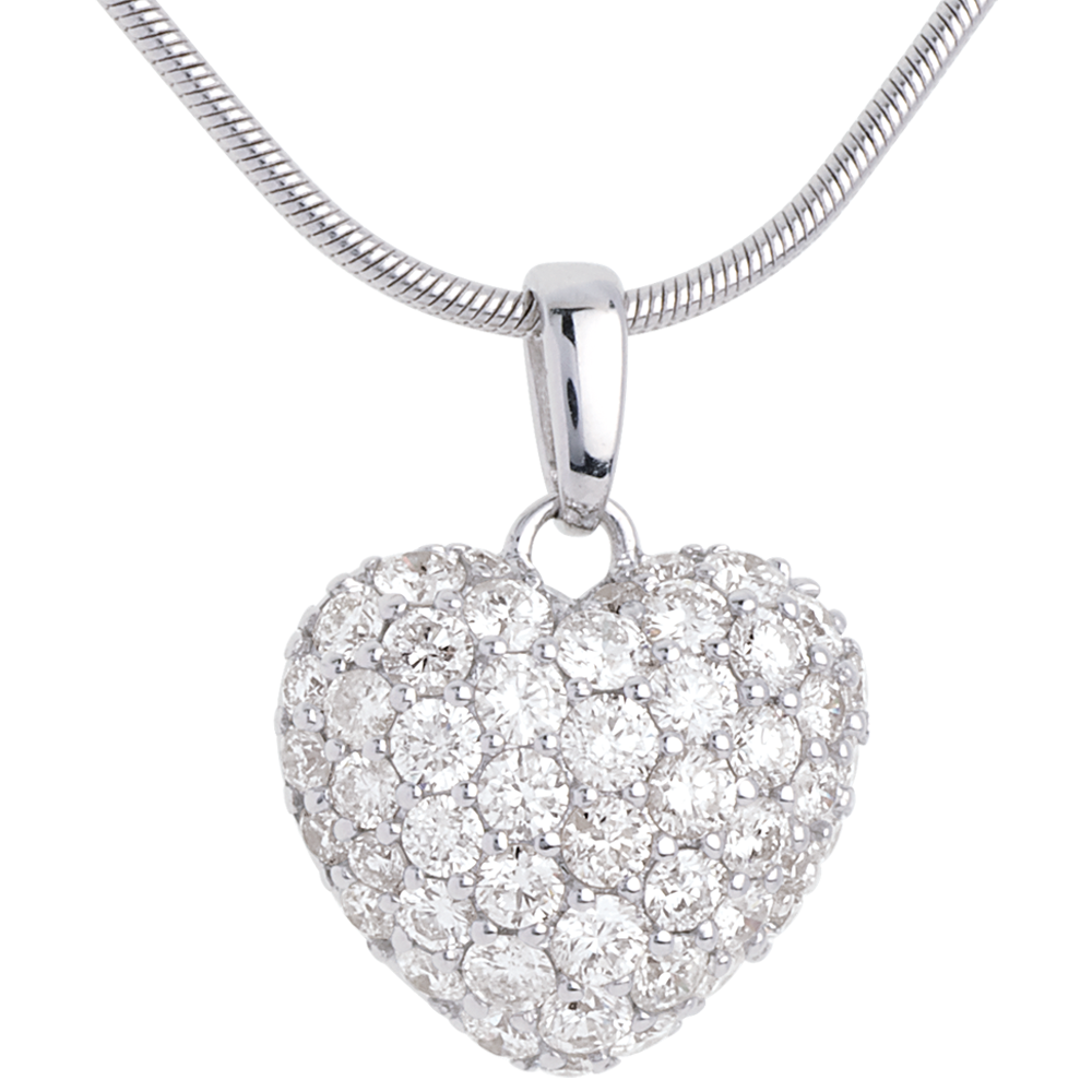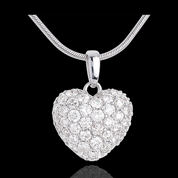 Blask namiętności w niepowtarzalnym i niezbędnym naszyjniku w kształcie serca wysadzanym diamentami.