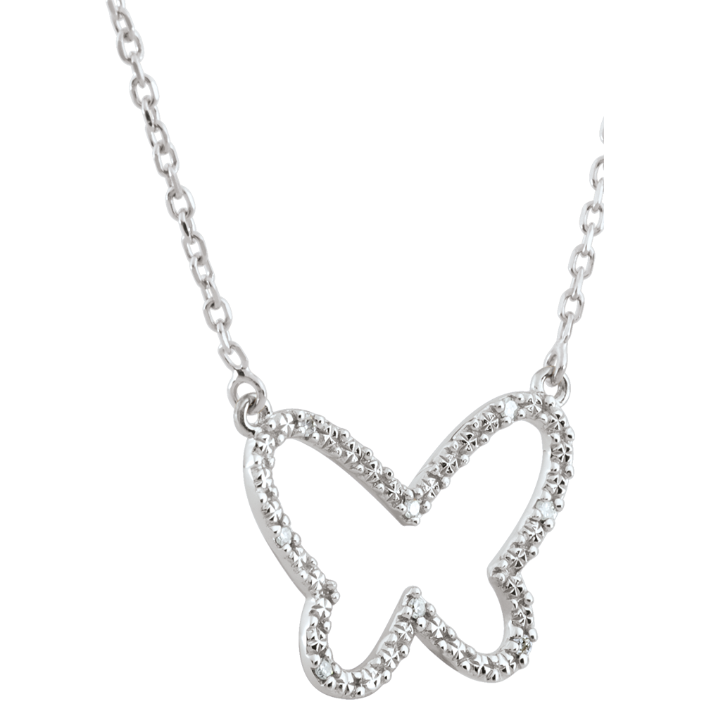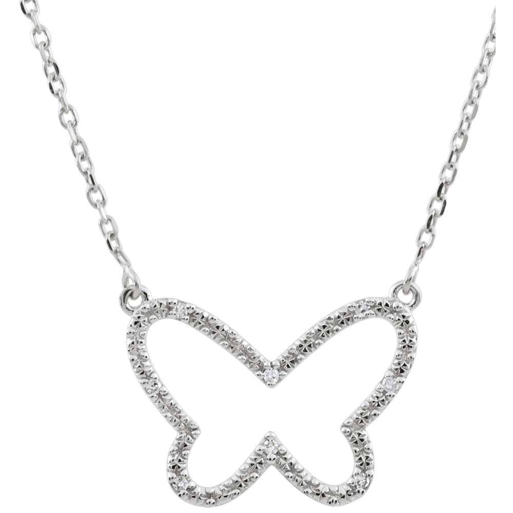Kontury motyla ze złota i diamentów na złotym łańcuszku.