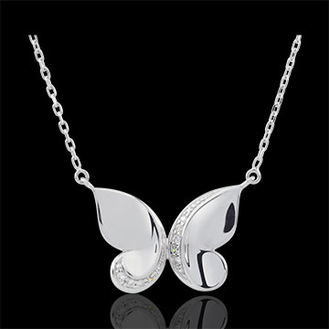 Dwa wdzięczne motyle nakreślone na białym złocie i zdobione diamentami.