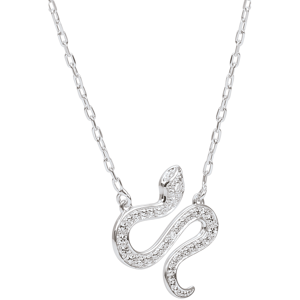 Naszyjnik z wężem z białego złota o skręconym i olśniewającym kształcie, ozdobiony diamentami, w nowoczesnej i szykownej odsłonie.