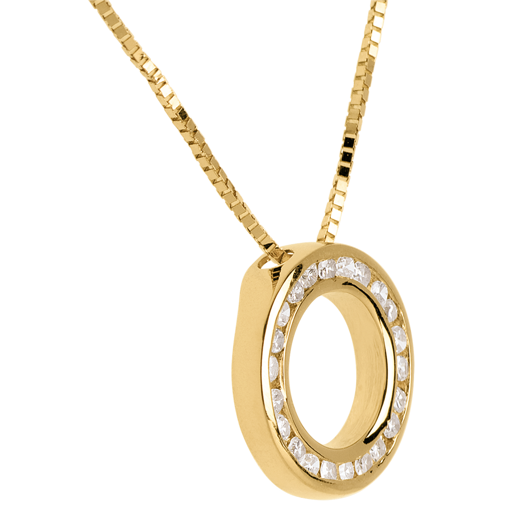 Z łańcuszkiem o regulowanej długości 42 cm i 45 cm ze złota 18-karatowego.