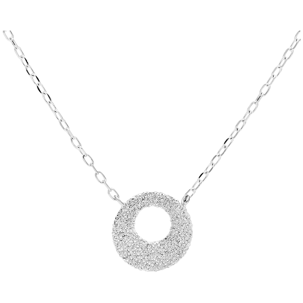 Nowoczesny naszyjnik z białego złota. Ozdobiony kółkiem z teksturowanego złota z efektem diamentowym. Z całą pewnością stanie się ulubioną biżuterią.
