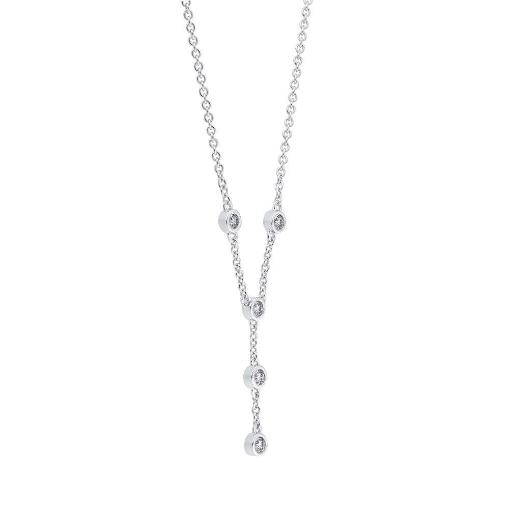 Ten naszyjnik ozdobiony 5 diamentami stanowi kwintesencję subtelnej elegancji. Łańcuszek dwupozycyjny 42cm i 45cm.
