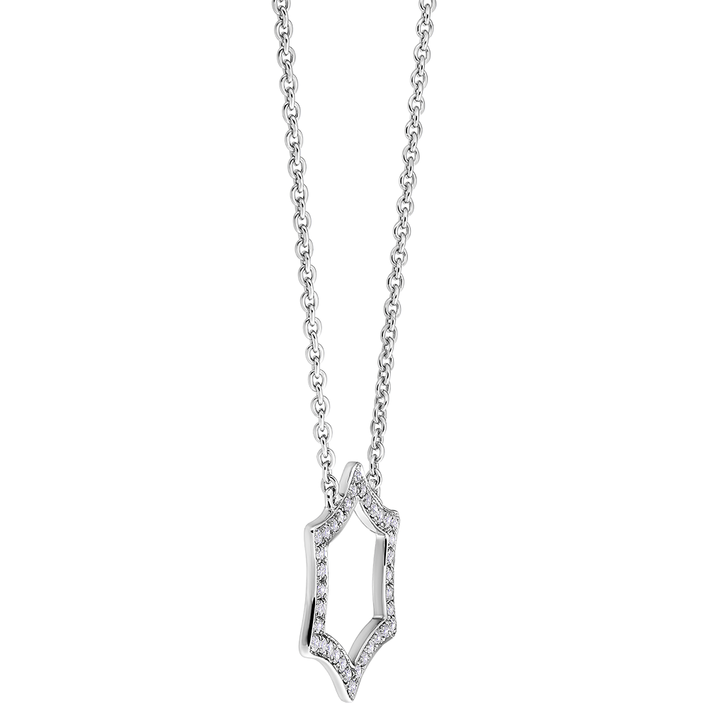 Delikatny i kobiecy naszyjnik z łańcuszkiem z białego złota ozdobionym motywem gwiazdy subtelnie wysadzanej diamentami. Łańcuszek dwupozycyjny 42cm i 45cm.