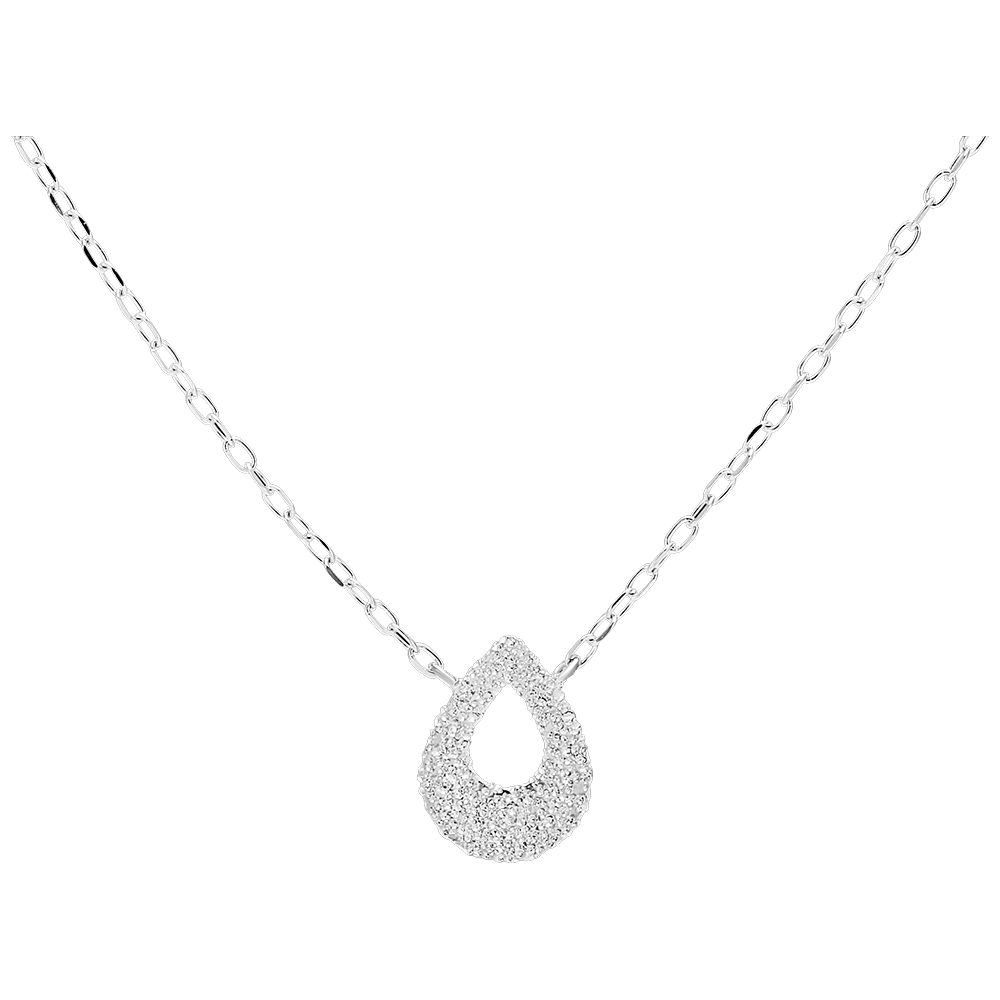 Nowoczesny naszyjnik z białego złota. Ozdobiony elementem w kształcie gruszki z teksturowanego złota z efektem diamentowym. Z całą pewnością stanie się ulubioną biżuterią.