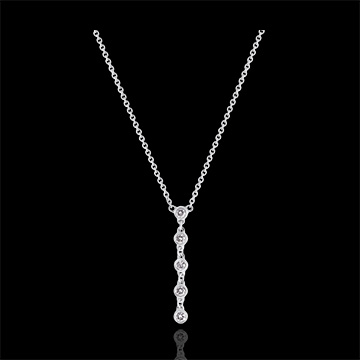 5 mieniących się diamentów w kształcie kropelek umieszczonych jedna za drugą i przymocowanych do delikatnego łańcuszka. Minimalistyczny, ponadczasowy design o czystym i wyrazistym przesłaniu. Łańcuszek dwupozycyjny 42cm i 45cm.
