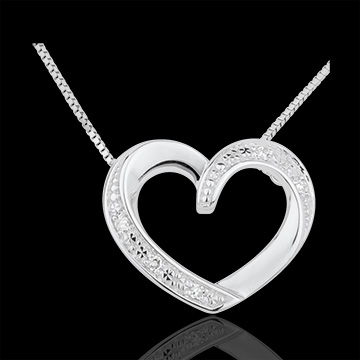 Serce wysadzane stemplami ze złota i brylantów, zawieszone na łańcuszku wenecjana z białego złota.b