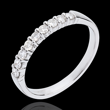Obrączka z białego złota 18-karatowego w połowie wysadzana diamentami - krapy - 0,25 karata - 9 diamentów