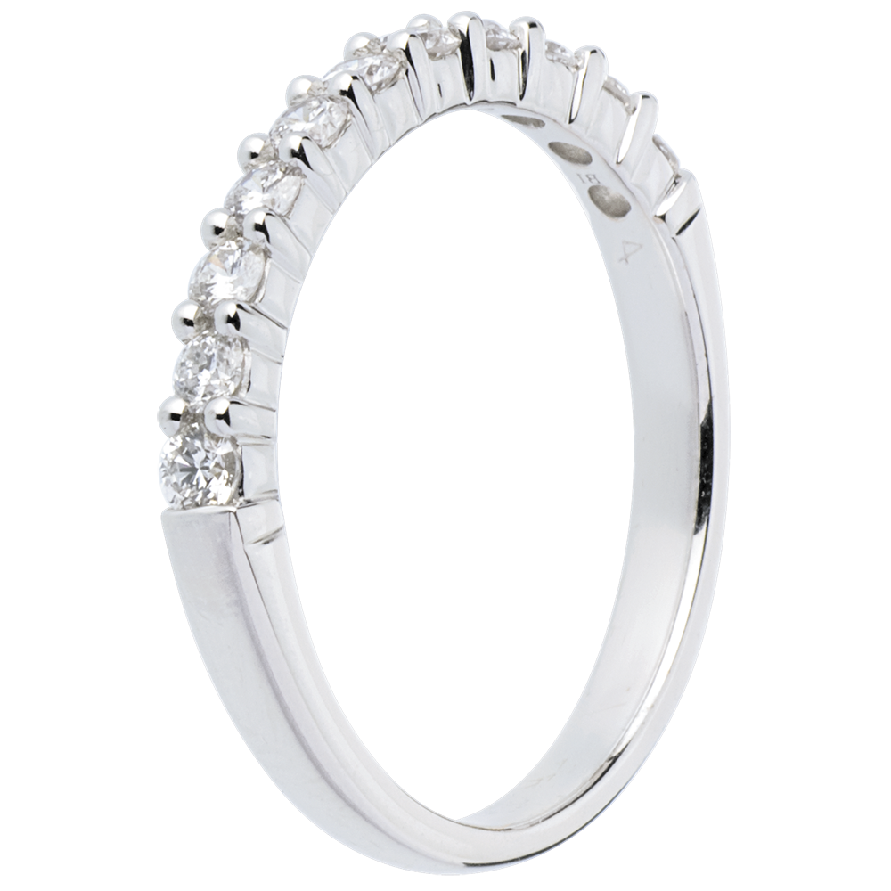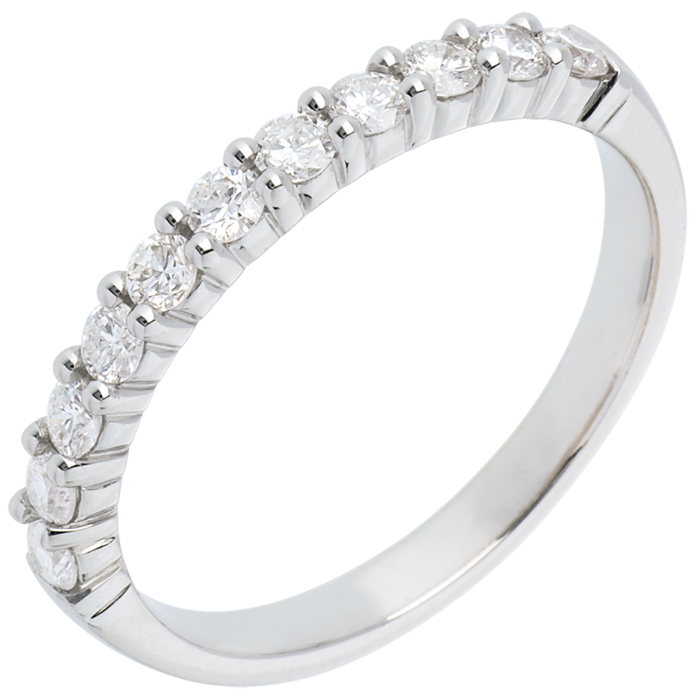 Obrączka z białego złota 18-karatowego w połowie wysadzana diamentami - krapy - 0,4 karata - 11 diamentów