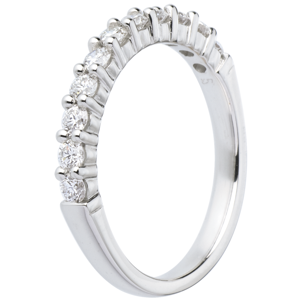 Obrączka z białego złota 18-karatowego w połowie wysadzana diamentami - krapy - 0,5 karata - 11 diamentów