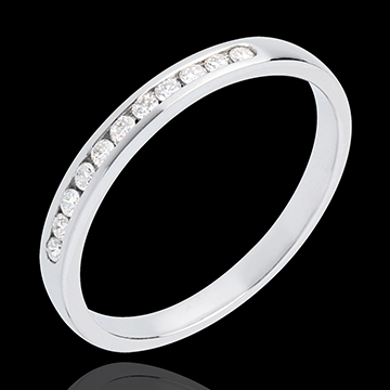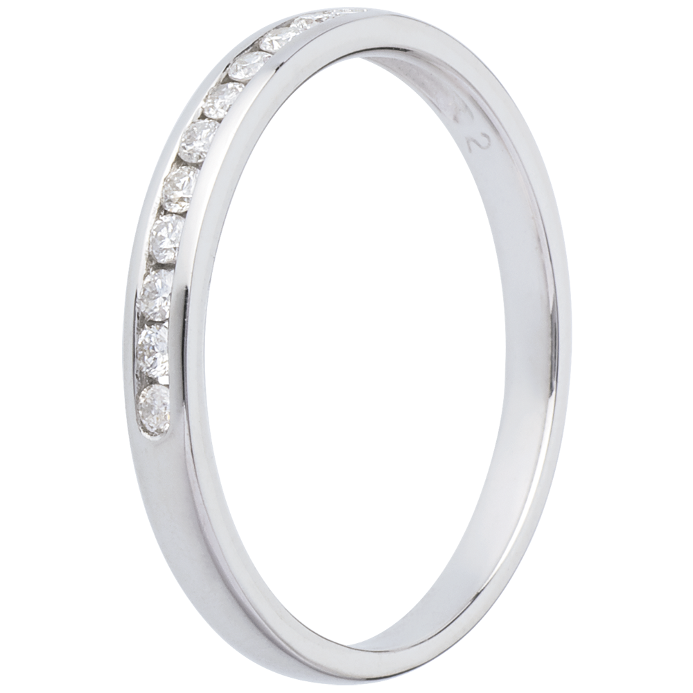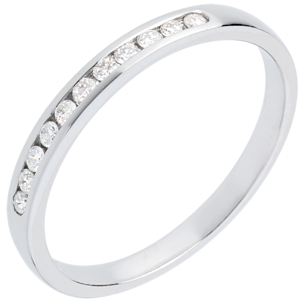 Obrączka z białego złota 18-karatowego w połowie wysadzana diamentami - oprawa kanałowa - 11 diamentów: 0,15 karata