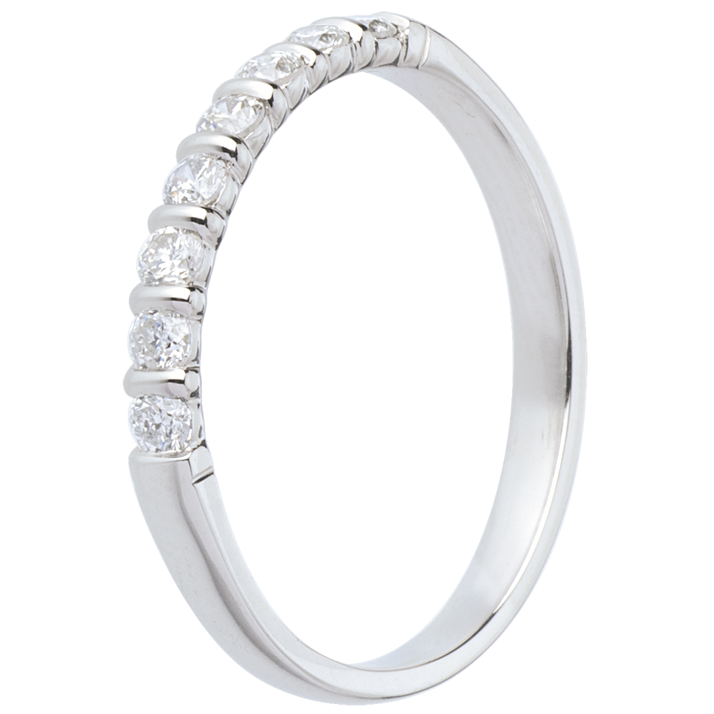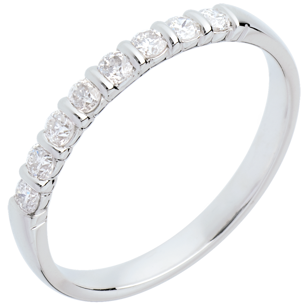 Obrączka z białego złota 18-karatowego w połowie wysadzana diamentami - oprawa sztabkowa - 0,25 karata - 8 diamentów