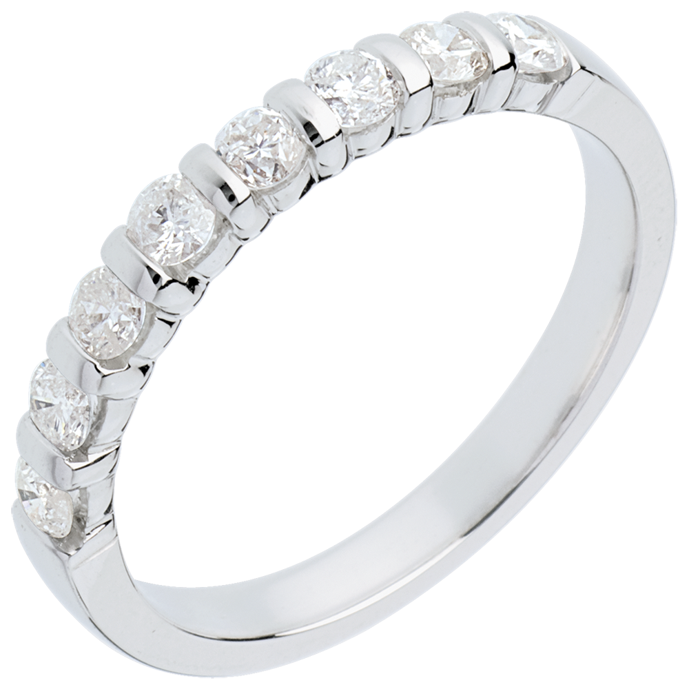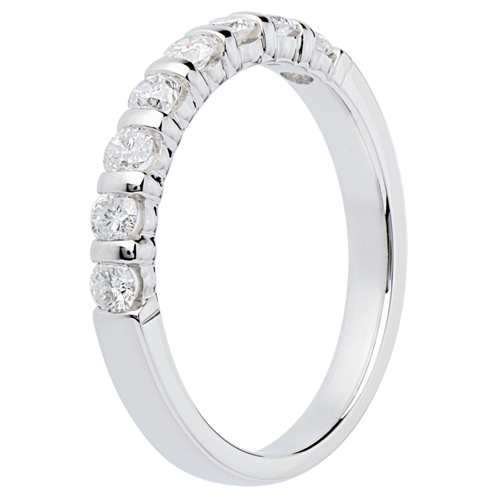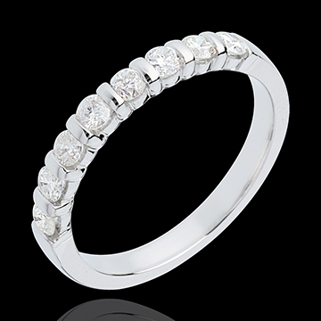Obrączka z białego złota 18-karatowego w połowie wysadzana diamentami - oprawa sztabkowa - 0,5 karata - 8 diamentów