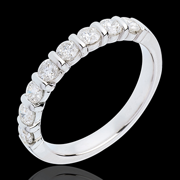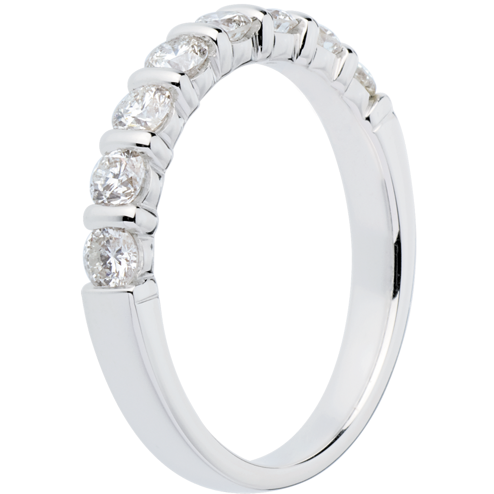 Obrączka z białego złota 18-karatowego w połowie wysadzana diamentami - oprawa sztabkowa - 0,65 karata - 8 diamentów