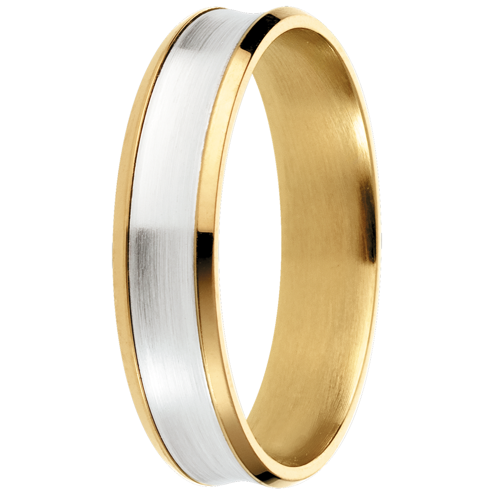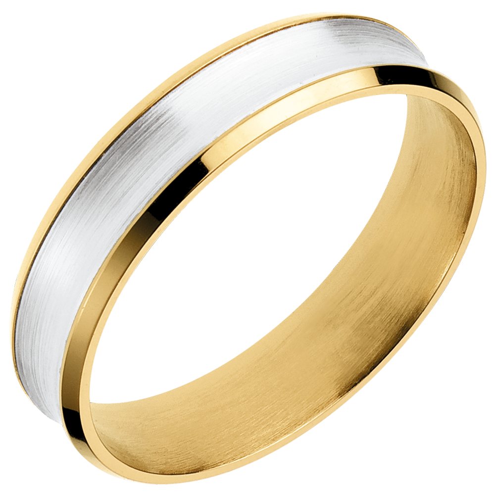 Minimalna i dystyngowana obrączka wykonana z połączenia żółtego złota i białego złota szczotkowanego.